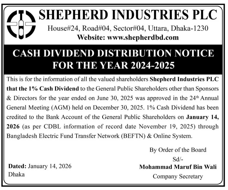 Cash Dividend Distribution Notice for the year of 2024-2025